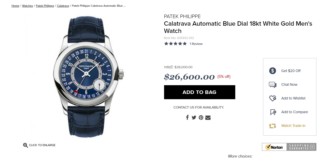 Với mỗi cỗ máy Patek Philippe Calatrava có số hiệu 6000G-012, nhà sản xuất cho biết giá chính hãng là 28.000 USD.