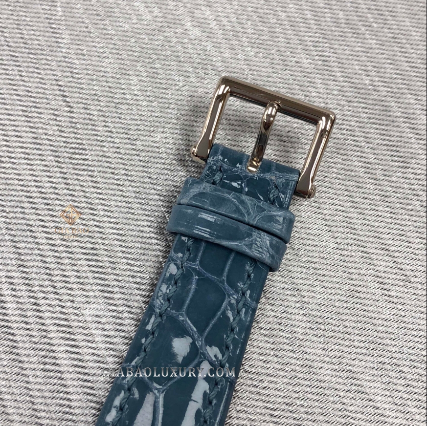 Trên chiếc đồng hồ Patek Philippe Calatrava 7200/50G-010, Patek Philippe đã sử dụng dây da cá sấu xanh nhạt, đi kèm với khóa cài bằng vàng trắng. Sợi dây trông đơn giản thực chất được thực hiện rất công phu: từ khâu chọn phần da bụng với những đường vân đẹp nhất, cho tới từng mũi khâu đều được thực hiện thủ công.