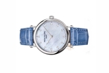 Chúng ta có thể thấy bề mặt mặt số được chế tác bằng phương pháp khảm trai, bắt sáng một cách hài hòa. Tương phản hoàn toàn với vẻ nhẹ nhàng của mặt số khảm trai là những cọc số kim cương lấp lánh, được cố định bởi những chân nối bằng vàng trắng. Những chấm nhỏ chỉ số phút xung quanh mặt số cũng là những điểm nhấn quan trọng, làm cho mặt số có thêm nhiều chi tiết hơn.