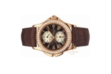 Mặt đồng hồ bằng chất liệu ngọc trai màu chocolate khá ấn tượng làm nền cho bộ chữ số La Mã bằng vàng nổi bật. 2 mặt số phụ nền trắng ờ vị trí 6h và 12h tạo ra sự cân bằng trên bố cục mặt đồng hồ.