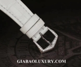 Phần khóa cài của phiên bản Patek Philippe Comlications 4937G-001 cũng được các nghệ nhân nạm tỷ mỉ kim cương, tô điểm tổng thể cho chiếc đồng hồ cả ở những chi tiết nhỏ nhất.