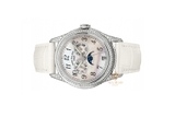 Phiên bản Patek Philippe Complications 4937G-001 dành tặng đến phái đẹp, xuất hiện lộng lẫy với lớp vỏ vàng trắng 18k được các nghệ nhận khảm nạm tỷ mỉ những viên kim cương đều tăm tắp trên thân vỏ, vẻ đẹp khảm trai của lớp mặt số giúp chiếc đồng hồ trở nên nổi bật hơn dưới mọi góc nhìn.