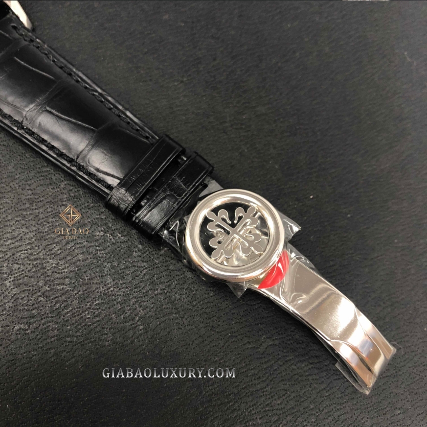 Mẫu đồng hồ Patek Philippe Complications 5130/10P-011 đi kèm với dây da cá sấu đen được khâu thủ công và bộ khóa hoa thị. Khóa hoa thị là một biểu tượng quan trọng trên những chiếc Patek cổ điển, và với chất liệu Platinum, cơ chế này sẽ đảm bảo chiếc đồng hồ được cố định chắc chắn trên cổ tay bạn.