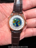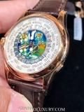 Tại vị trí số 2422 trong phiên đấu giá Christie's là mẫu đồng hồ World Time với mặt số tráng men trắng thanh lịch cùng bản đồ thu nhỏ của Trái Đất, đến từ nhà sản xuất Patek Philippe.