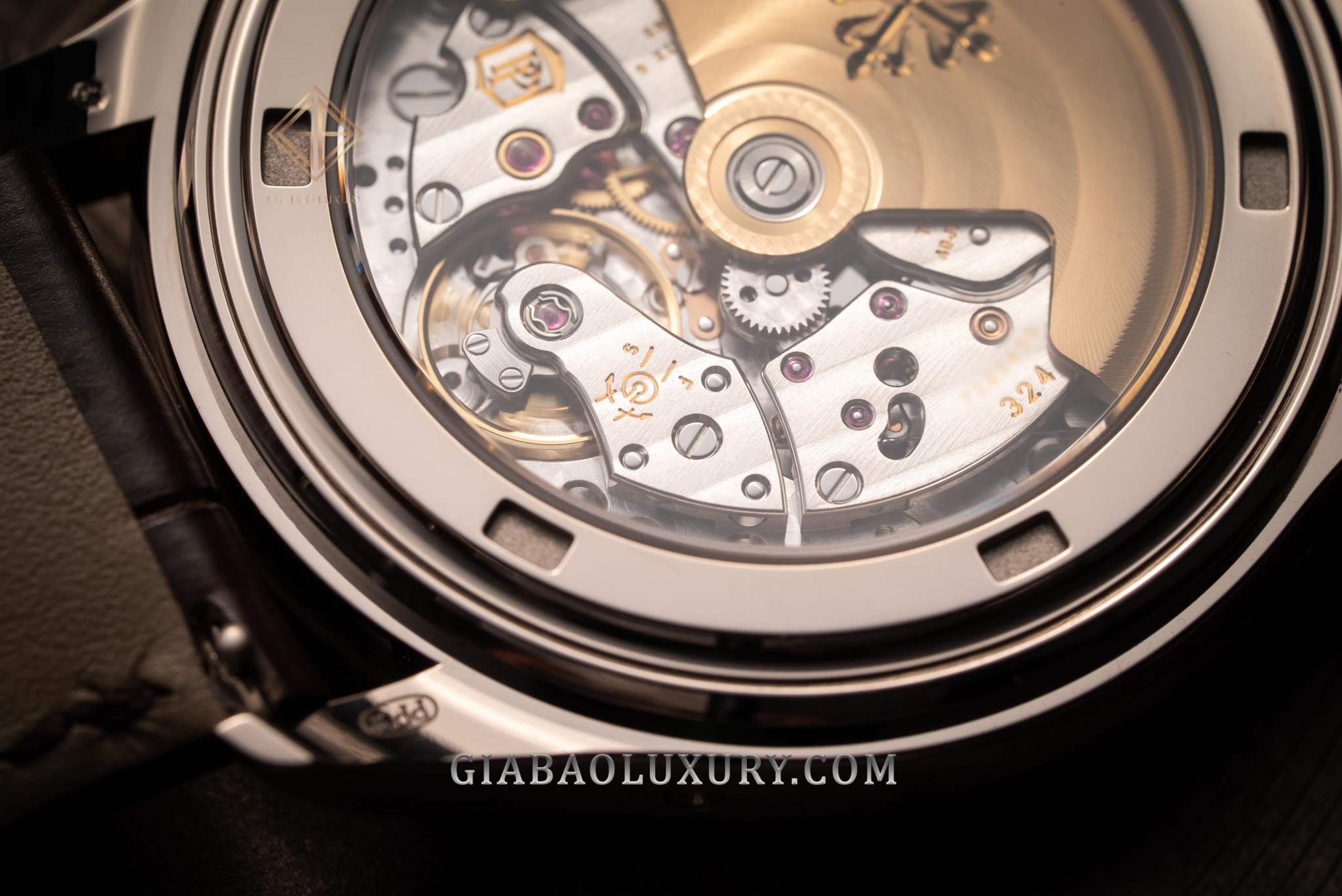 Không chỉ có một mặt số màu xám cá tính, thiết kế biểu tượng Patek Philippe ref. 5146G-010 còn chứa đựng một bộ máy rất tinh tế bên trong vỏ khung: caliber 324 S IRM QA LU. Bộ máy này dày 5,32mm với 11 cầu nối, 36 chân kính cùng một rotor trung tâm từ vàng 21K có khả năng cung cấp năng lượng cho cả chiếc đồng hồ vận hành chính xác lên tới 45 giờ đồng hồ.