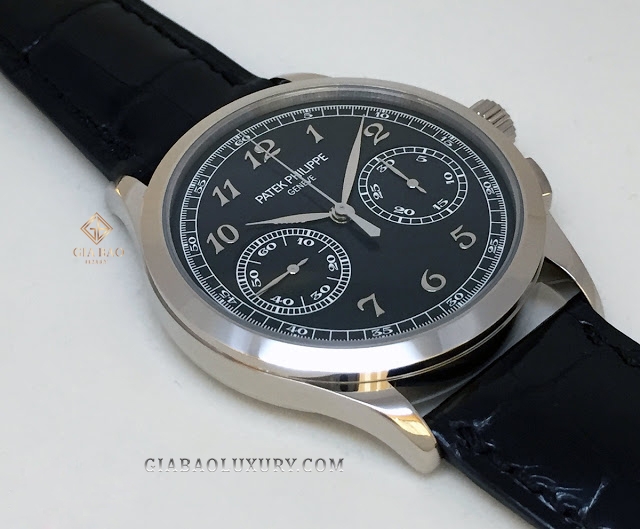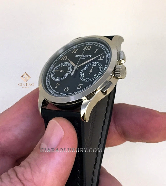 Tính năng Chronograph được kích hoạt qua hai nút bấm ở góc 2 giờ và 4 giờ. Xen giữa đó là núm chỉnh giờ được tạo khía, với logo hình thánh giá Calatrava được dập nổi ở phần đầu. Patek Philippe là thương hiệu chuyên chế tác những mẫu đồng hồ cao cấp, và bạn có thể dễ dàng tưởng tượng sự chính xác và độ nhạy khi thao tác trên những nút bấm, khi vặn cót và cả khi chỉnh giờ đồng hồ.