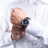 Phần trung tâm mặt số là ba cây kim giờ, phút và giây. Kim giờ và phút được phủ chất phát quang tại trung tâm. Nằm góc 6 giờ là Lịch tuần trăng lồng ghép cùng bộ hiển thị 24 giờ. Tất cả những cơ chế hiển thị đó đều được đặt trong bộ vỏ vàng trắng với kích thước 40mm x 11.36mm. Không chỉ thoải mái trên cổ tay, chiếc đồng hồ này còn thực sự bắt mắt nhờ mặt số xanh chuyển sắc ấn tượng.