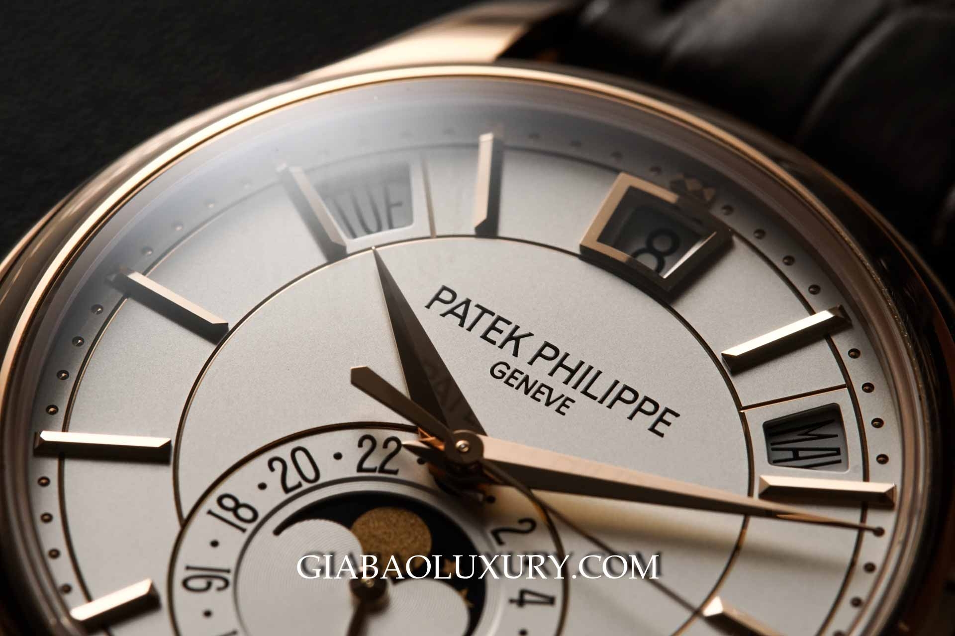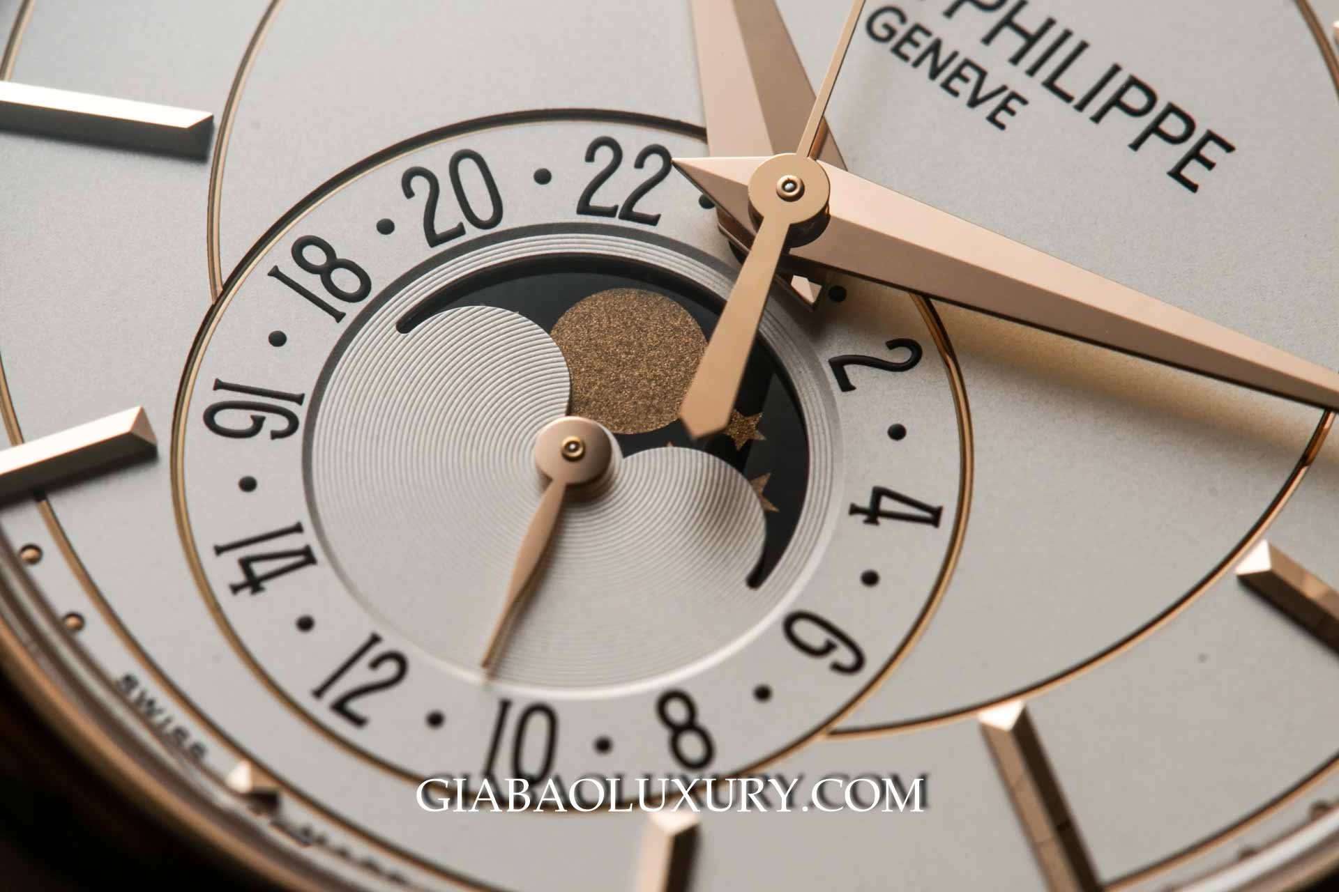 Hoàn thiện đến từng chi tiết vẫn luôn là tiêu chí hàng đầu của nhà sản xuất Patek Philippe. Từng góc của bộ kim, hay cọc chỉ giờ bằng vàng hồng trên mặt số của cỗ máy Patek Philippe ref 5205R-001 đều được các nghệ nhân nhà Patek Philippe gia công bằng tay một cách kỹ lưỡng, đem đến độ tương phản cao trên nền trắng nhã nhặn xung quanh. Sự kết hợp giữa vàng hồng và mặt số trắng chưa bao giờ là lỗi thời, nó luôn mang đến một cảm giác của sự hoài cổ tinh tế.