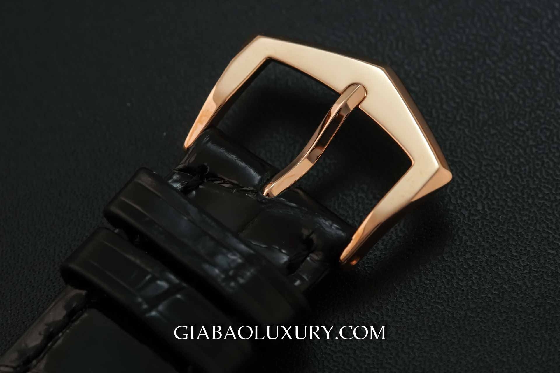 Cùng vành bezel trơn bóng, đường khoét eo mềm mại bên cạnh hông, núm chỉnh giờ có dấu họa thị bằng vàng hồng của Patek Philippe Annual Calendar 5205R-001 là hai mặt kính sapphire trước sau, giúp cỗ máy ngày hôm nay có khả năng chống nước ở độ sâu 30m tiêu chuẩn. Đem lại cái nhìn chuẩn mực nhất cho sự thanh lịch của các quý ông luôn tìm kiếm những cỗ máy đẳng cấp của 5205R-001 là dây đeo bằng da cá sấu tự nhiên với mỗi đường kim khâu thủ công. Cố định dây đeo màu nâu trầm của cỗ máy 5205R-001 nổi bật là khóa cài nhỏ gọn mà vẫn đảm bảo độ tinh tế cần có.