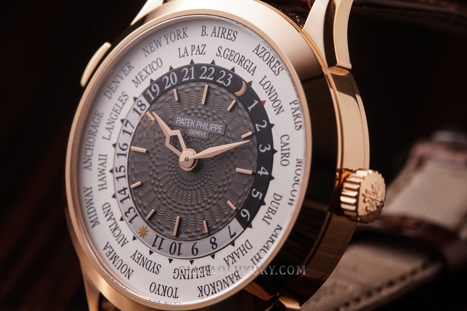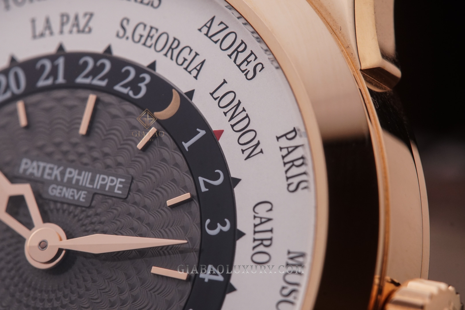 Bên cạnh tính năng lịch, Patek Philippe còn sở hữu rất nhiều thiết kế với tính năng Giờ thế giới. Một trong số đó là chiếc Patek Philippe Complications 5230R-0012, cỗ máy thời gian với mặt số Guilloche ấn tượng.