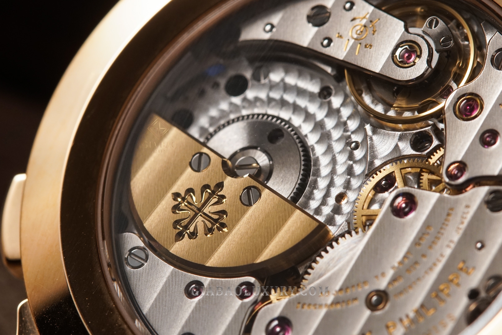 Bên trong chiếc Patek Philippe Complications 5230R-0012 là bộ máy tự động Caliber 240 HU, sử dụng rotor cỡ nhỏ. Với kích thước rotor được thu gọn lại, độ dày của máy cũng theo đó được giảm xuống. Caliber 240 HU hoạt động với tần số 21,800 vph, thời lượng cót 48 giờ và có các chi tiết được hoàn thiện thủ công tinh xảo.