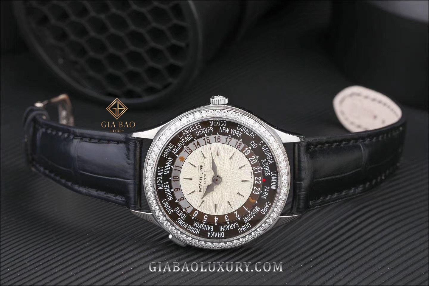 Với tính năng đặc trưng như vậy, mặt số đồng hồ được chia thành ba phần rất rõ ràng: phần ngoài cùng là đĩa xoay với tên các thành phố, phần ở giữa là đĩa xoay 24 giờ, và phần trong cùng là mặt số giờ phút cơ bản. Phần mặt số giờ phút được Patek Philippe hoàn thiện với những đường vân Guilloche đặc biệt được thực hiện thủ công - và để tạo ra những họa tiết đều và đẹp như vậy, người thợ phải có tay nghề thực sự cao.