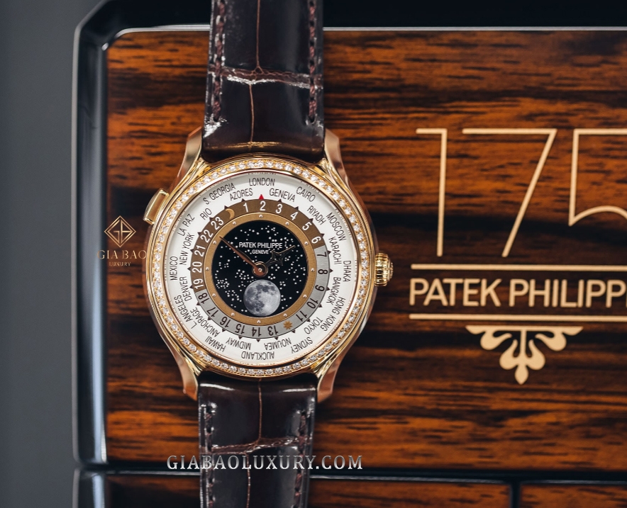 Được sản xuất với số lượng giới hạn chỉ 450 chiếc, mẫu đồng hồ Patek Philippe Complications 7175R-001 là một thiết kế World Time đặc biệt, có thêm tính năng Lịch tuần trăng. Cơ chế này được đặt ở phần trung tâm mặt số, với tông nền đầy sao đầy chất thơ.