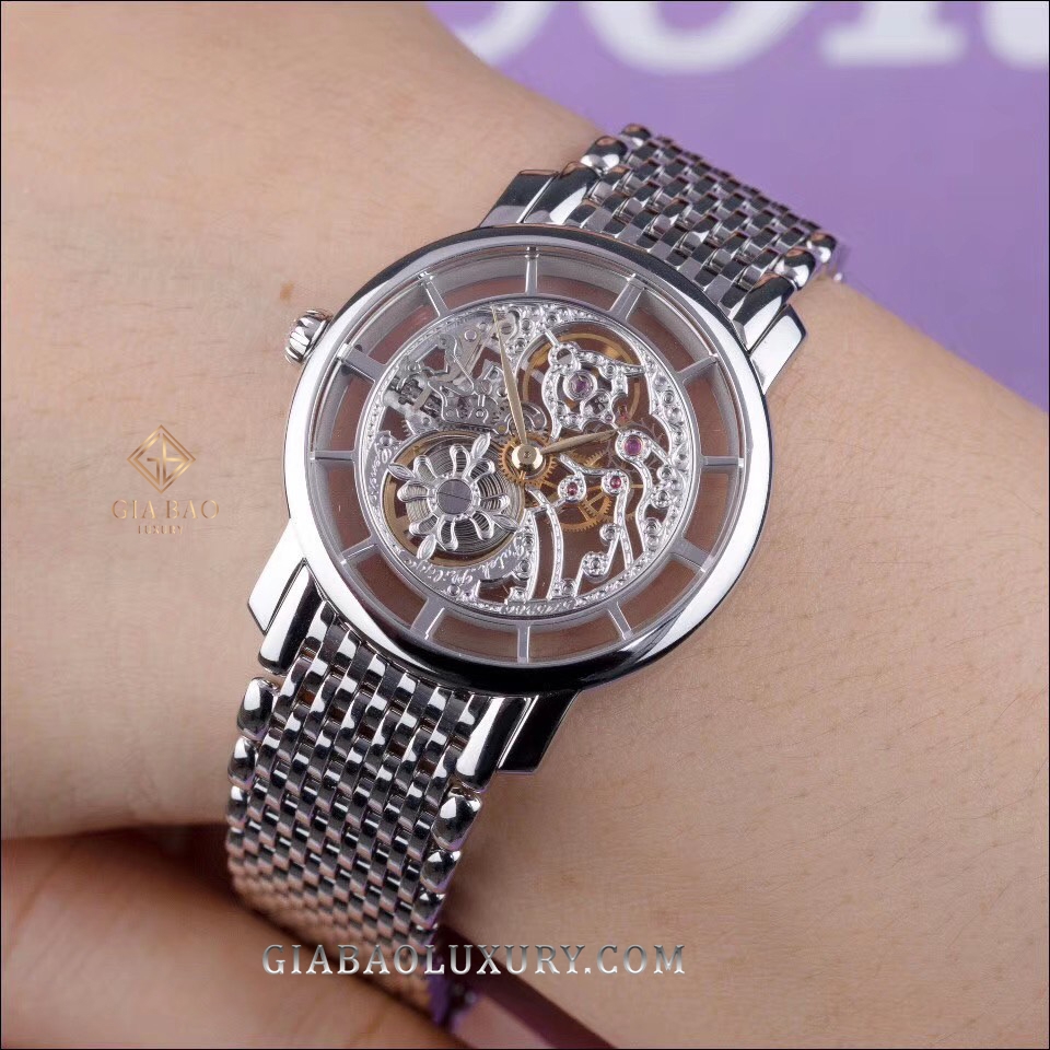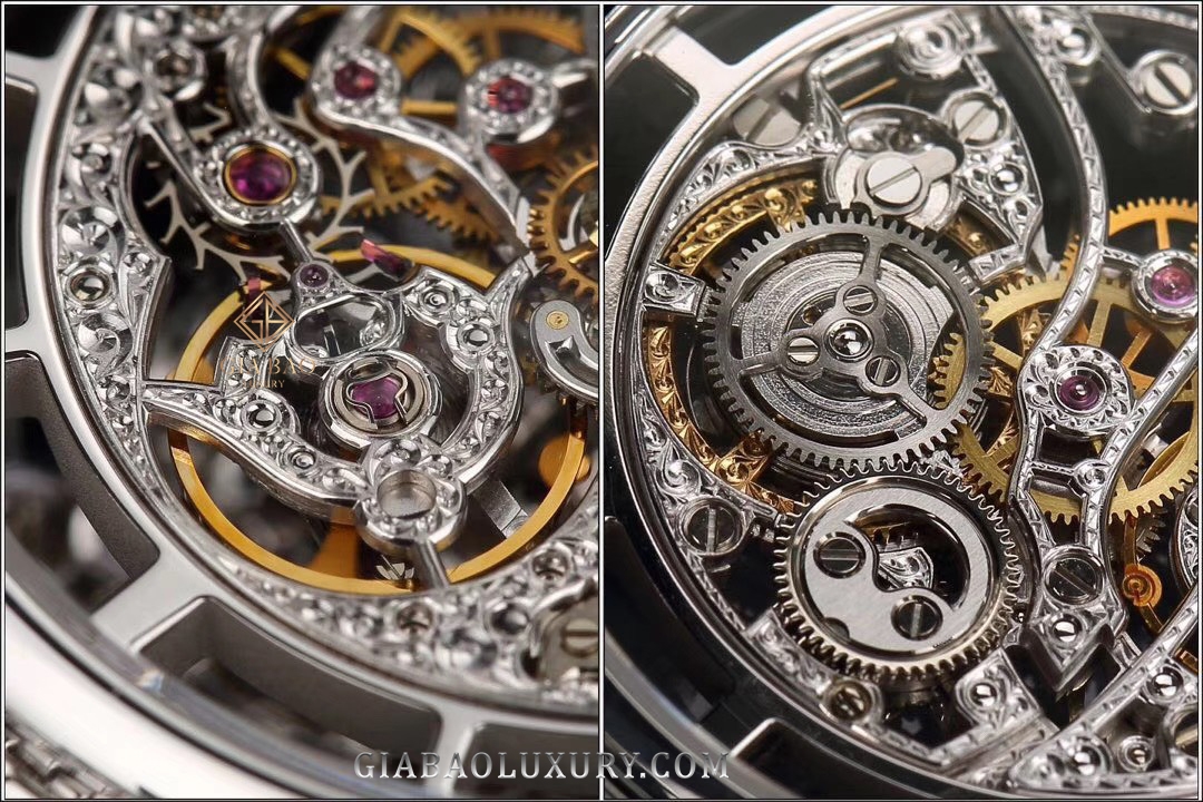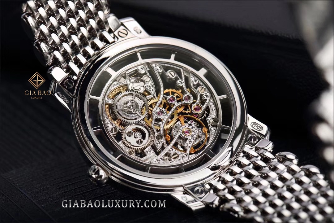 Bộ vỏ đồng hồ được chế tác từ vàng trắng 18k – mang lại vẻ đẹp sắc sảo và sang trọng trong từng chi tiết.