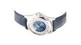 Thương hiệu Patek Philippe đã ôm trọn phát kiến của Cottier, biến nó thành biểu tượng đặc trưng. Dòng World Time ra đời, sử dụng cấu trúc đĩa xoay hiển thị 24 múi giờ chẵn, mô phỏng một “bản đồ giờ giấc” thu nhỏ, khiến chỉ cần bấm nút, kim giờ nhảy đến múi giờ mong muốn. Lịch sử ghi nhận các model nổi tiếng như 5110, 5130, 5230, 5131… Mỗi phiên bản có thiết kế khác nhau, nhưng đều tôn vinh “Cottier design” cốt lõi. Riêng 5130P-020 nổi bật với đường kính 39.5mm, khuôn vỏ platinum hiếm hoi, cùng mặt số tông xanh lam mang họa tiết guilloche sang trọng.