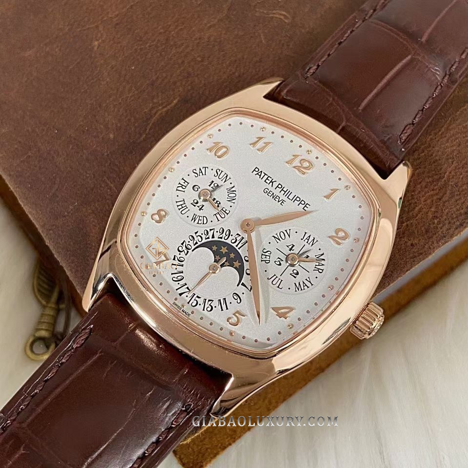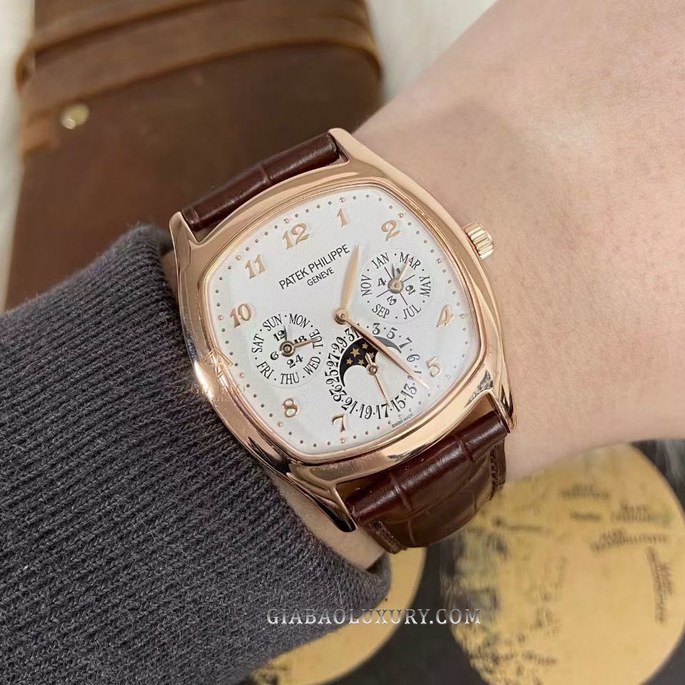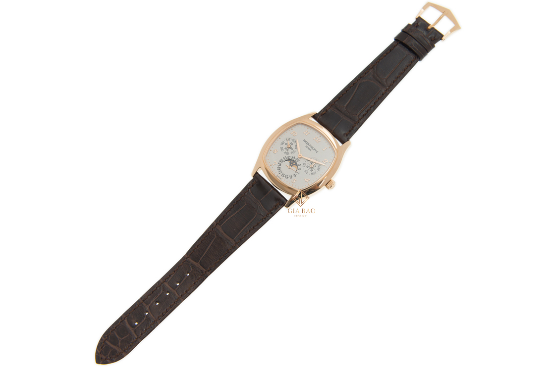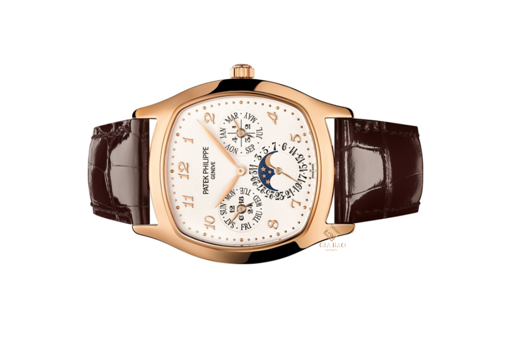 Đặc biệt phức tạp, hơn hẳn lịch thường niên, những chiếc đồng hồ lịch vạn niên là sáng tạo của thương hiệu Patek Philippe, đồng thời là một trong những tính năng đem lại ánh hào quang cho thương hiệu đồng hồ Thụy Sỹ này. Khác với ref. 5327, ref. 5159 là những chiếc đồng hồ lịch vạn niên dáng tròn cổ điển, Patek Philippe 5940R-001 là một điểm đặc biệt với bộ vỏ dáng cushion vừa cá tính mà vẫn giữ nét sang trọng.