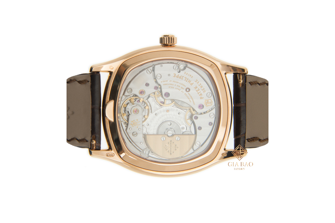 Hơn hết, Grand Complications 5940R-001 là một chiếc đồng hồ đáng tự hào của thương hiệu cao cấp như Patek Philippe. Đây là một chiếc đồng hồ không chỉ sở hữu vẻ đẹp ở mặt ngoại hình, mà sức hấp dẫn của model này còn nằm ở bộ máy tự động Calibre 240 Q. Chỉ cần xoay mặt đáy đồng hồ lại, người đeo có thể nhìn thấy chuyển động không ngừng của bánh lắc vàng ngay bên dưới lớp kính sapphire. Gồm có 275 chi tiết, với tần số hoạt động là 21.600 vph, Calibre 240 Q có thể đảm bảo năng lượng cho chiếc đồng hồ Patek Philippe Grand Complications 5940R-001 hoạt động trong vòng 48 giờ.