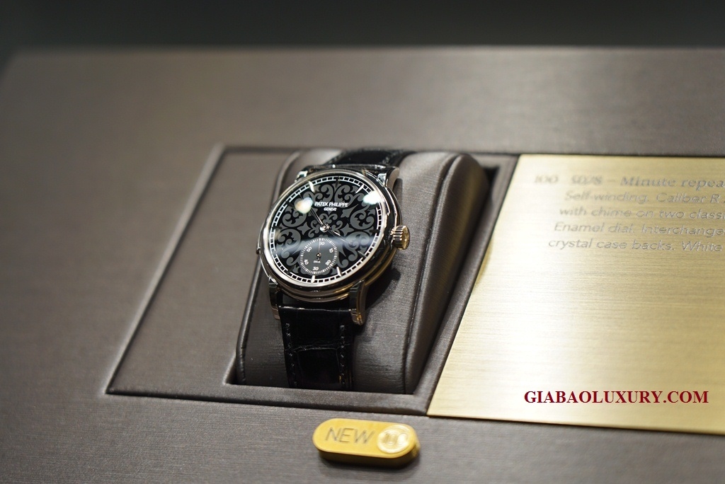 Patek Philippe Grand Complications 5078G mới được ra mắt gây ấn tượng mạnh mẽ đến giới mộ điệu bởi mặt số tráng men với hoa văn arabesque được thực hiện ngay trên mặt số. Trong khi đó, hệ thống cọc chỉ giờ bằng vàng trắng cùng tone với bộ vỏ khung đã được đính nổi ngay trên mặt số.