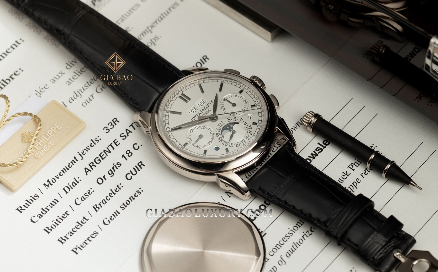 Bộ sưu tập Grand Complication của Patek Philippe được ra mắt vào năm 2011 là những chiếc đồng hồ luôn được mọi người khao khát sở hữu. Grand Complication là loại đồng hồ có những hệ thống cơ khí siêu phức tạp, có nhiều chức năng bổ sung thêm cho đồng hồ như hiển thị ngày trong tháng, thứ trong tuần, chronograph hoặc lịch vạn niên và cơ chế lên giây tự động. Chiếc đồng hồ Patek Philippe Grand Complications Manual Wind 5270G-001 được Gia Bảo nhắc đến lần này là một trong nhiều chiếc đồng hồ nổi trội của hãng, mang nét đậm chất nam tính, sang trọng và lịch lãm.