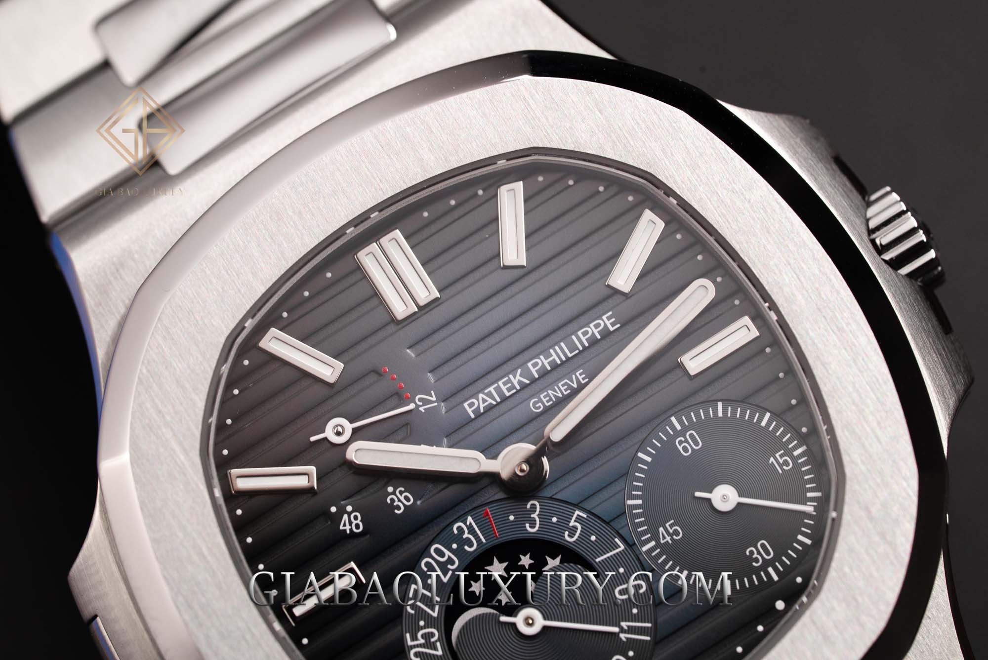 Tất cả các phiên bản đồng hồ Nautilus đều đặt trọng tâm vào tính dễ đọc cùng thiết kế tinh tế và chiếc Nautilus 5712/1A-001 cũng không phải ngoại lệ. Trên mặt số, Patek Philippe đã chia ra từng khu vực cho từng tính năng cụ thể, như kim giây ở góc 4 giờ, đảm bảo mặt số đồng hồ luôn có sự chuyển động, lịch ngày và lịch tuần trăng ở góc 7 giờ, cuối cùng là chỉ báo dự trữ năng lượng được sắp xếp ngay ngắn tại vị trí góc 10 giờ.