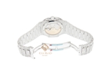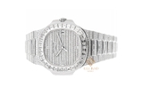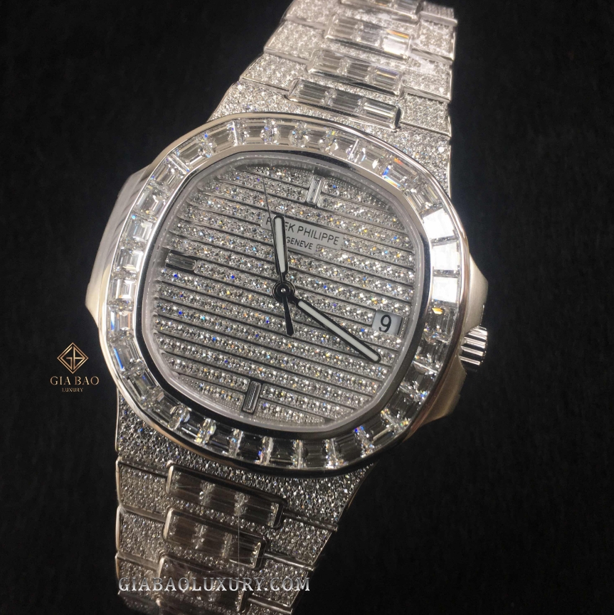 Với chất liệu vàng trắng, bộ vỏ 40mm của mẫu đồng hồ Nautilus 5719/10G-010 được xem là nền tảng hoàn hảo để những viên kim được quyền khoe sắc rạng rỡ nhất. Patek Philippe Nautilus 5719/10G-010 vẫn là một chiếc đồng hồ tiêu chuẩn với sự có mặt của bộ ba kim bằng vàng được đặt ở trung tâm mặt số. Nhà sản xuất đã lược bỏ các chi tiết và để lại ba cọc chỉ giờ ở các vị trí 12, 6 và 9h, riêng cọc 3 giờ là ô cửa sổ báo ngày nhỏ bé với phần nền màu trắng trang nhã, chữ số đen nhỏ gọn mà vẫn rõ nét. Dưới cọc chỉ 12h là tên thương hiệu PATEK PHILIPPE ngay ngắn đảm bảo chất lượng tuyệt đối của chiếc đồng hồ.