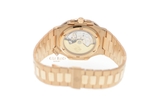 Bên cạnh vòng bezel đặc biệt đó, bộ vỏ của chiếc Patek Philippe Nautilus 5723/112R-001 còn được hoàn thiện theo đúng tiêu chuẩn Haute Horlogerie. Từng đường xước mờ được thực hiện cực kỳ tinh xảo, với độ dày vừa đủ để người dùng có thể cảm nhận. Xen kẽ với đó, những góc cạnh của chiếc đồng hồ cũng được đánh bóng để tôn lên vẻ bóng bẩy của chất liệu vàng hồng.