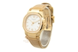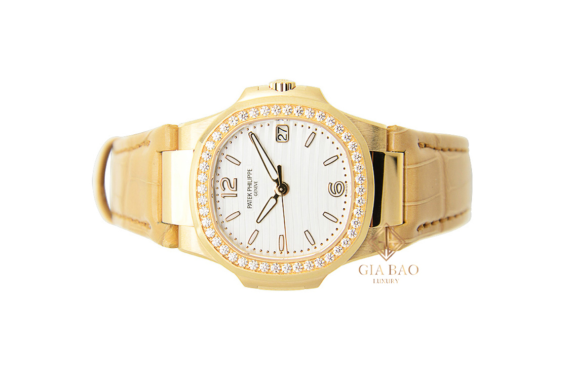 Gia tăng sự quyến rũ cho cả thiết kế sang trọng này không gì khác chính là 46 viên kim cương đính đều vừa vặn trên vành bezel. Những viên kim cương trắng được các nghệ nhân lựa chọn kỹ lưỡng đảm bảo độ tinh khiết cũng như có khả năng bắt sáng ưu việt nhất. Phối hợp ăn ý với bộ vỏ khung bằng vàng hồng của cỗ máy Patek Philippe Nautilus 7010R-011 là dây đeo màu beige cực kỳ độc đáo, cực kỳ mới mẻ vốn được may thủ công một cách chi tiết và cẩn thận.