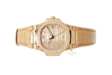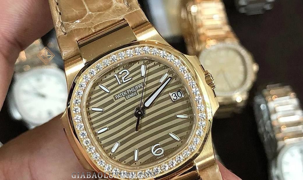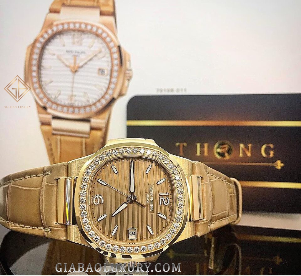 Ngày hôm nay, Gia Bảo Luxury muốn giới thiệu đến bạn đọc chiếc đồng hồ Patek Philippe Nautilus 7010R-012 kế thừa những nét đẹp truyền thống và pha trộn những cách tân hiện đại của kỹ thuật chế tác đồng hồ thế kỷ XXI. Sở hữu bộ vỏ khung bằng vàng hồng nguyên khối, chiếc đồng hồ có kích thước 32mm như tỏa sắc vàng lộng lẫy trên cổ tay quý cô. Với hình dạng vành bezel dáng tròn bát giác lấp lánh kim cương, Patek Philippe Nautilus 7010R-012 còn gây ấn tượng bởi những đường chạm trổ bề mặt theo chiều ngang trên mặt số vô cùng thanh lịch và thể thao.