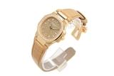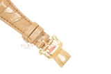 Mang phong cách năng động, sáng tạo nhưng pha chút cổ điển, lịch lãm, tạo tác được trang bị dây đeo đồng hồ làm từ chất liệu da màu nâu nhạt hoàn thiện thủ công với các đường may chỉ thẳng tắp, đều đặn. Thiết kế mặt số màu nâu cùng tông với dây đeo đồng hồ không chỉ đem lại sự hài hòa, liên kết về màu sắc mà còn tô đậm thêm phong cách trẻ trung, hiện đại trên nền tảng thiết kế cổ điển. Mặt số chạm nổi vân ngang nhưng không cứng nhắc, rập khuôn mà linh hoạt mềm mại như những đường vân sóng uốn lượn vô cùng sinh động. Điểm tô cho vẻ đẹp mặt số là hệ thống cọc chỉ giờ và bộ kim trung tâm đặc trưng bằng vàng hồng phủ chất phát quang có khả năng phát sáng trong bóng tối hữu hiệu. Riêng góc 3 giờ là ô cửa sổ báo ngày nhỏ nhắn nền trắng chữ số đen rõ nét.