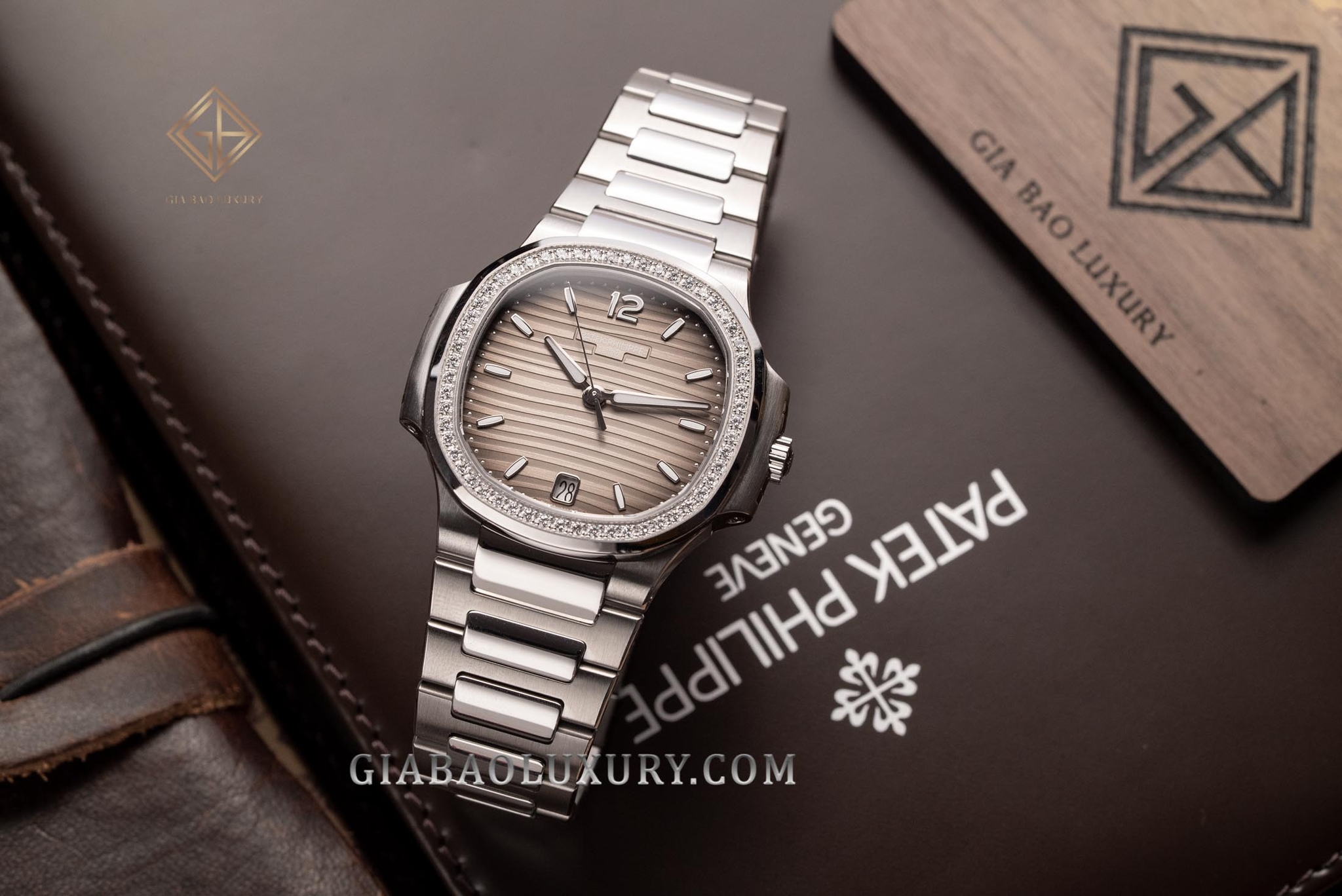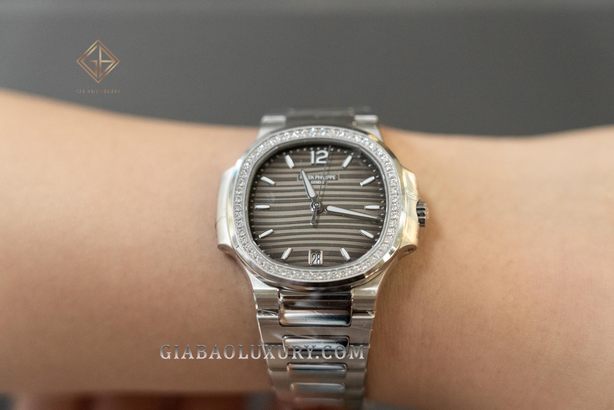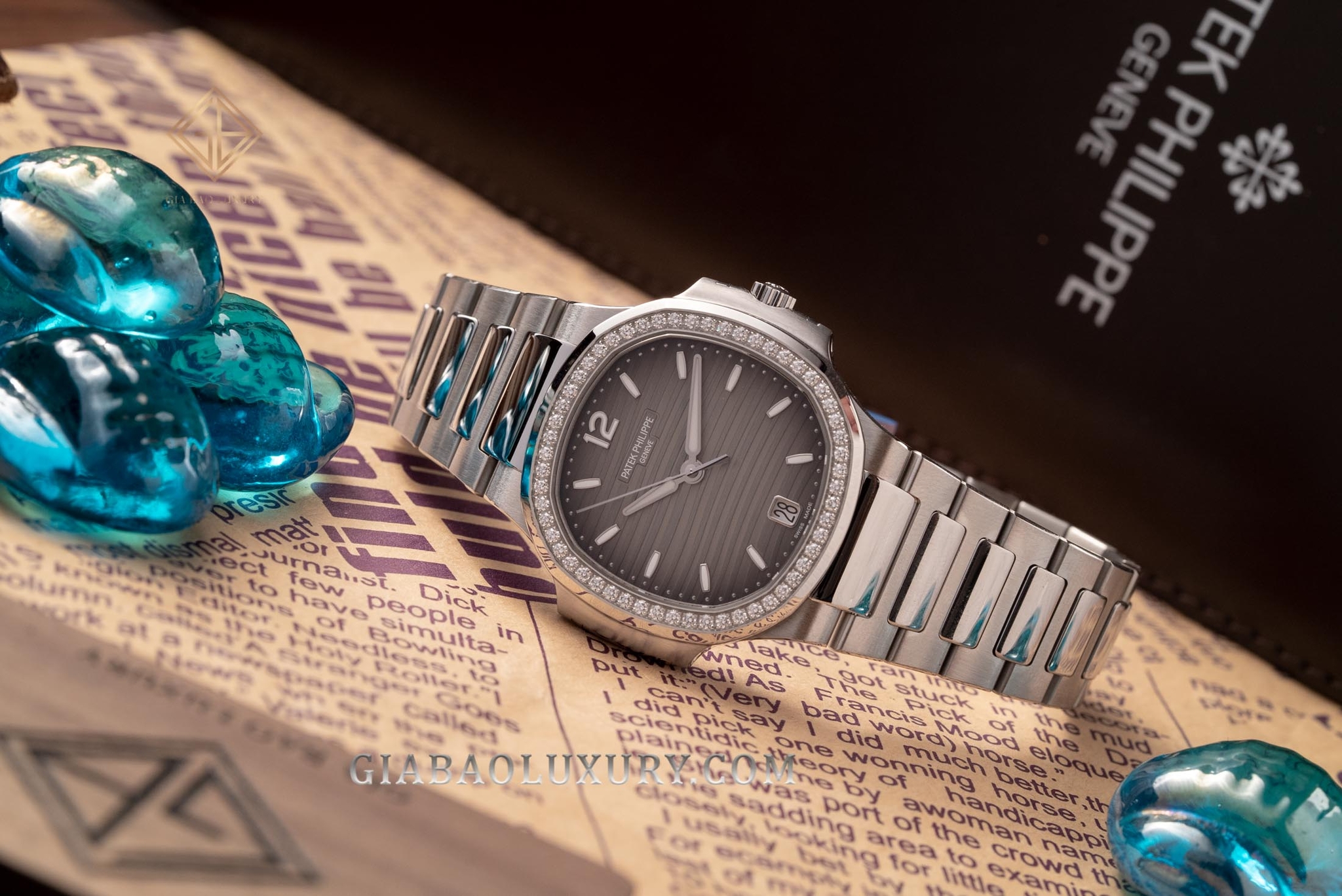Có mặt tại Gia Bảo Luxury mới đây là mẫu đồng hồ nữ thuộc dòng Nautilus của Patek Philippe, ref. 7118/1200A-011 trong chất liệu thép không gỉ, đi kèm vành bezel kim cương nguyên bản chính hãng. Patek Philippe được xem là một cái tên danh giá với hình ảnh cây thánh giá Calatrava đã nổi danh toàn bộ ngành công nghiệp đồng hồ Thụy Sỹ kể từ rất lâu. Những chiếc đồng hồ của hãng hiện nay đi kèm con dấu chất lượng là Patek Philippe Seal đảm bảo thiết kế hài hòa, bộ máy cơ học chính xác với độ hoàn thiện đều đạt mức xuất sắc.