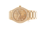 Tương tự với bộ vỏ đồng hồ, sợi dây cũng được chế tác từ vàng hồng nguyên khối. Toàn bộ bề mặt dây được đánh bóng, nhưng chúng ta vẫn có thêm nhiều điểm nhấn như phần cạnh bên thiết kế dạng bậc thang. Các mắt dây chính giữa được bo góc tròn trịa và cố định bởi bộ khóa bướm, trên đó có khắc logo của thương hiệu.