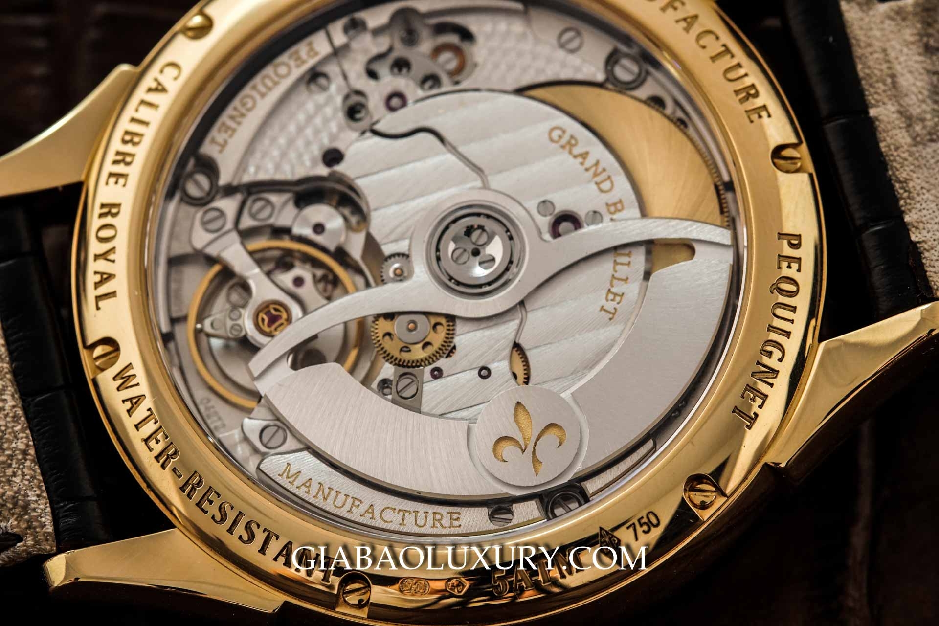 Rue Royale Moonphase trở nên đặc biệt hơn trong mắt người hâm mộ khi sở hữu bộ máy in-house Calibre Royal, được thiết kế, kiểm nghiệm và lắp ráp hoàn toàn trong phòng thí nghiệm Haute Horlogerie của nhà sản xuất Pequignet đặt tại Morteau, nước Pháp. Bộ máy này gồm có 318 chi tiết cũng như giúp Pequignet nhận được 8 bằng sáng chế quốc tế danh dự. Sở hữu một hộp cót lớn, Calibre Royal có thể cung cấp năng lượng cho chiếc Pequignet Rue Royale Moonphase vận hành lên tới 72 giờ đồng hồ với tần số 3Hz.