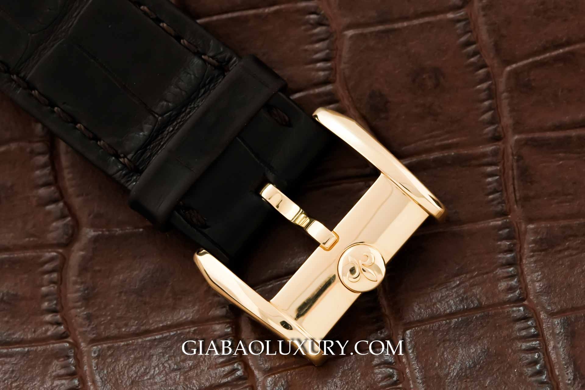 Không chỉ là một chiếc đồng hồ, Rue Royale Moonphase đem lại cái nhìn đẳng cấp khi được đeo trên cổ tay nhờ bộ vỏ khung bằng vàng vàng cao cấp. Bộ vỏ khung dáng tròn cổ điển, trong kích thước 42mm được vát cạnh mềm mại, cùn bề mặt sáng bóng là điểm nhấn vô cùng độc đáo của chiếc Rue Royale Moonphase. Hơn nữa, khi kết hợp cùng dây da cá sấu màu đen mềm mại, tự nhiên Pequignet Rue Royale Moonphase không hề thua kém những mẫu đồng hồ Thụy Sỹ cao cấp đắt tiền khác.