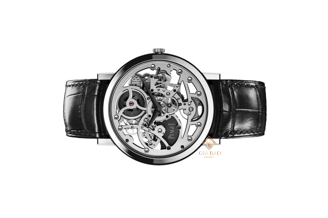 Để hạn chế tối đa độ dày của chiếc đồng hồ, nền mặt số đã được loại bỏ hoàn toàn. Lớp kính Sapphire cũng được làm mỏng hơn, phô bày ra hai cây kim giờ phút được đặt ngay phía trên tấm khung máy. Đương nhiên, việc loại bỏ mặt số sẽ yêu cầu Piaget hoàn thiện các chi tiết máy cẩn thận hơn, đẹp mắt hơn.