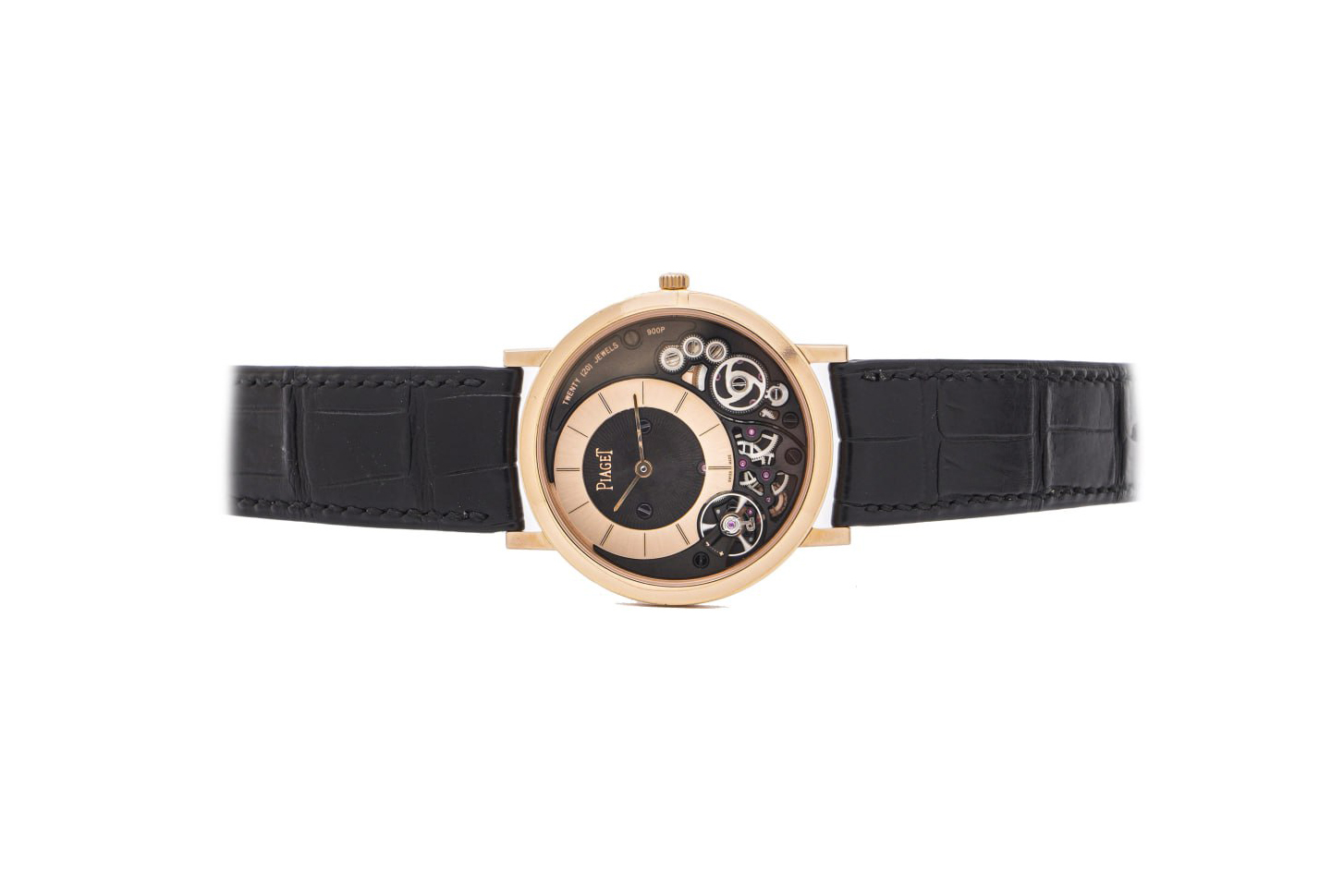 Đã mỏng, tất nhiên là phải nhẹ. Nhằm mang đến cho khách hàng một cảm giác thanh thoát, nhẹ tay và vừa vặn nhất khi kết hợp với bộ vỏ đồng hồ, những người thợ chế tác đồng hồ nhà Piaget đã lựa chọn phiên bản dây đeo màu đen được làm từ da cá sấu. Bên cạnh chức năng tối ưu hóa trải nghiệm của khách hàng, màu sắc của dây đeo cũng khiến cho thiết kế tổng thể của sản phẩm được dung hòa hoàn hảo.