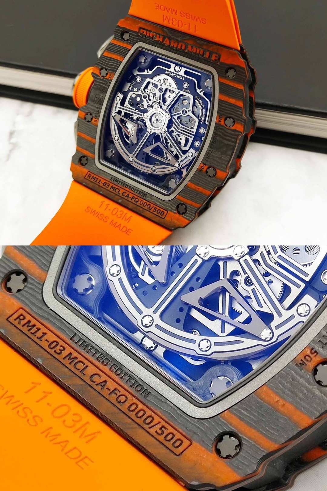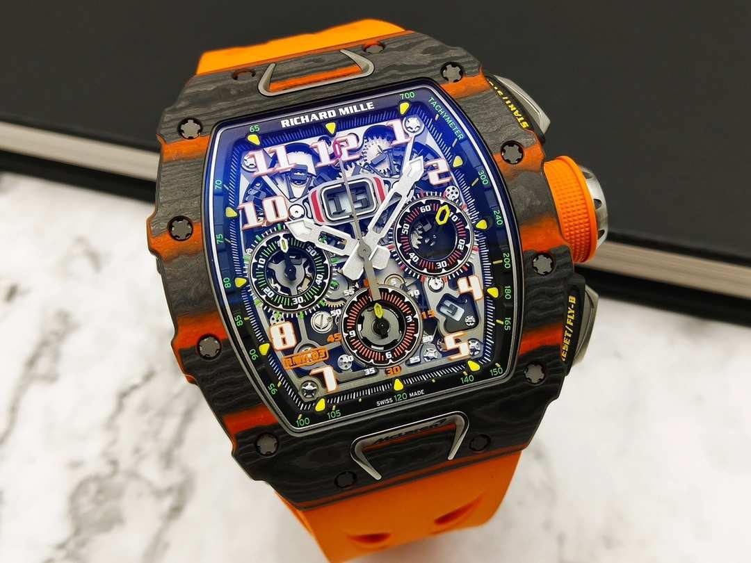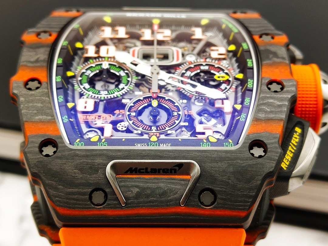 Kỷ niệm lần thứ 88 sự kiện Geneva International Motor Show, thương hiệu đồng hồ Richard Mille và hãng siêu xe nổi tiếng McLaren đã đánh dấu sự hợp tác đầy ý nghĩ với mẫu đồng hồ đặc biệt mang tên RM 11-03 McLaren Automatic Flyback Chronograph trong năm 2018.
