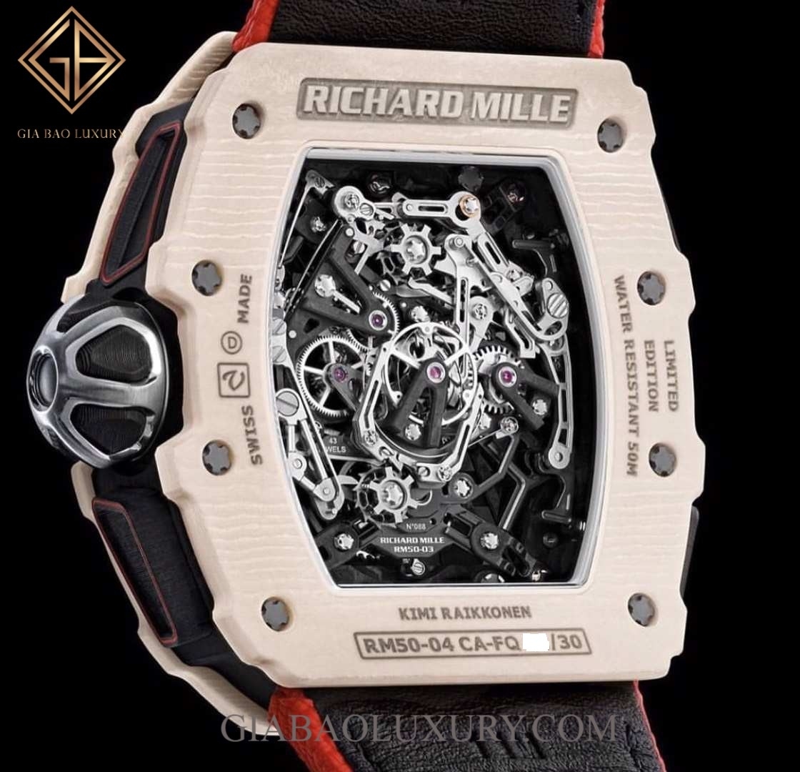 Sự phức tạp của chiếc Richard Mille RM50-04 Tourbillon Split Second Chronograph sẽ giúp cho Kimi rất nhiều trong việc tận dụng và xử lý tình huống trong cuộc đua tại Singapore. Chiếc đồng hồ này trước khi đưa ra thị trường đã được trải qua bài test trong xưởng sản xuất, và nó là mẫu tiêu biểu cho Richard Mille về việc kết hợp hoàn hảo các vật liệu siêu kỹ thuật. Việc kết hợp các vật liệu siêu kỹ thuật là chủ đề tốn không biết bao nhiêu giấy mực của cánh nhà báo.