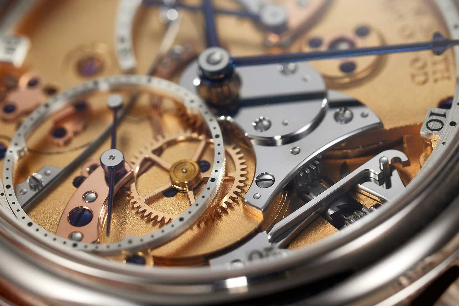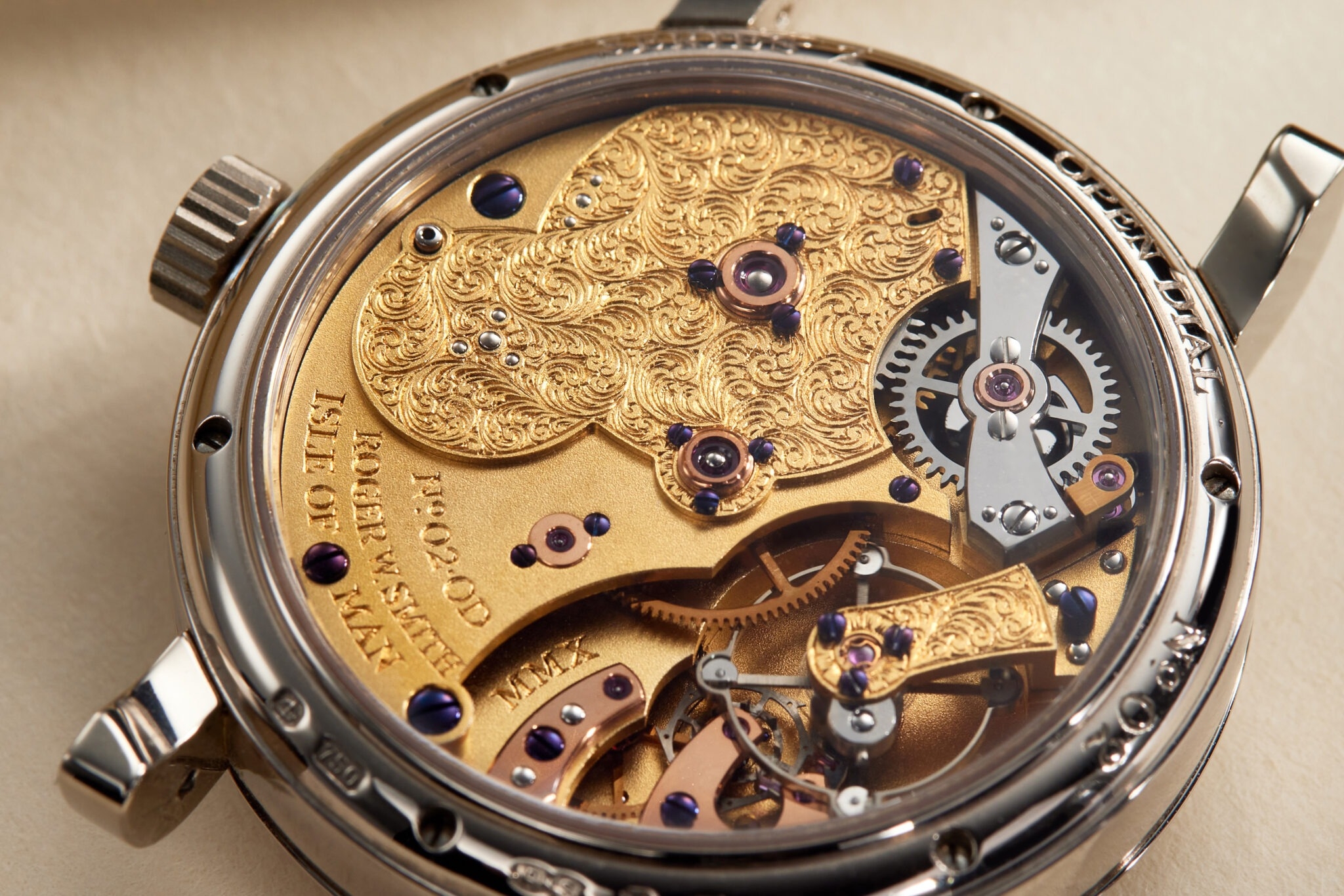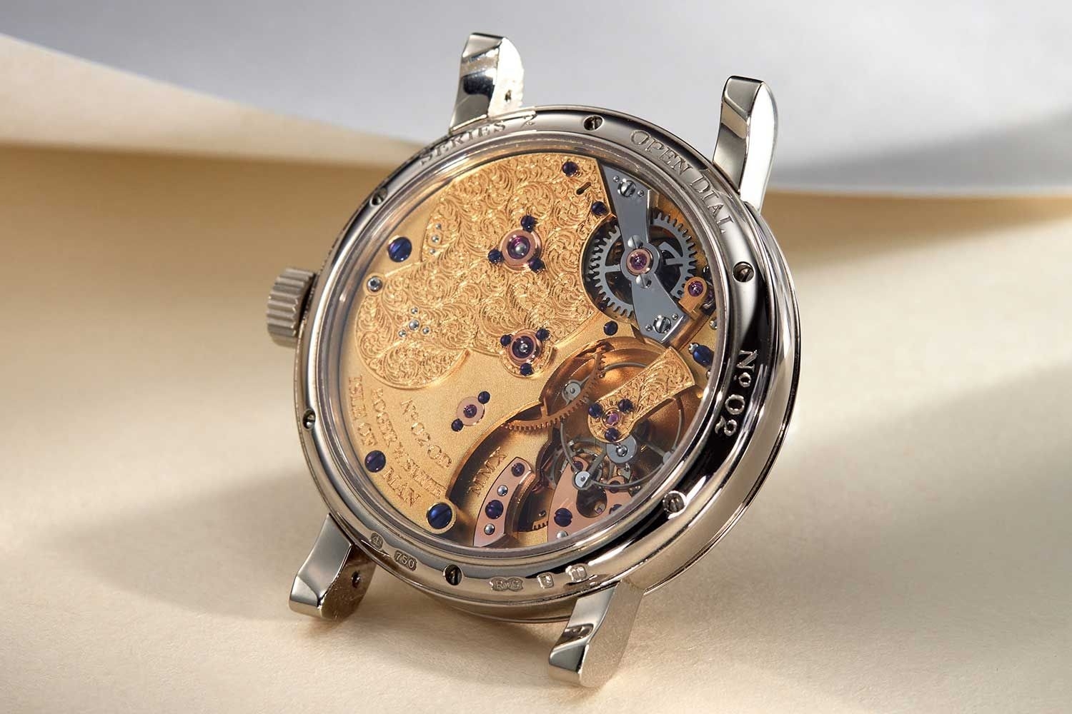Như mong đợi, chiếc đồng hồ xuất hiện tại cuộc đấu giá, quá xuất sắc. Chiếc đồng hồ này được bàn giao vào năm 2010 là một tác phẩm nghệ thuật được hoàn thiện thủ công tỉ mỉ. Bên trong đồng hồ là bộ thoát đồng trục (Co-axial) của bậc thầy đồng hồ Daniel và bộ cân bằng Quadrajust bung tự do. Từ phía sau, chúng ta có thể nhìn thấy những cầu đỡ, vòi cân bằng được khắc lên các hoạ tiết hoa kiểu Anh quốc trong khi xung quanh là tấm khung mạ vàng có bề mặt mờ.