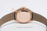 Trân quý vẻ đẹp cổ điển của thiết kế dây đeo da truyền thống, phiên bản đồng hồ lần này được nhà sản xuất trang bị dây đeo da cá sấu màu đen, liên kết chặt chẽ với bộ vỏ qua bốn càng nối dây bóng bẩy. Đi kèm với dây đeo tay màu đen lịch lãm là bộ khóa cài đặc trưng có đính biểu tượng vương miện của thương hiệu, lộng lẫy với chất liệu vàng hồng ở phía sau.