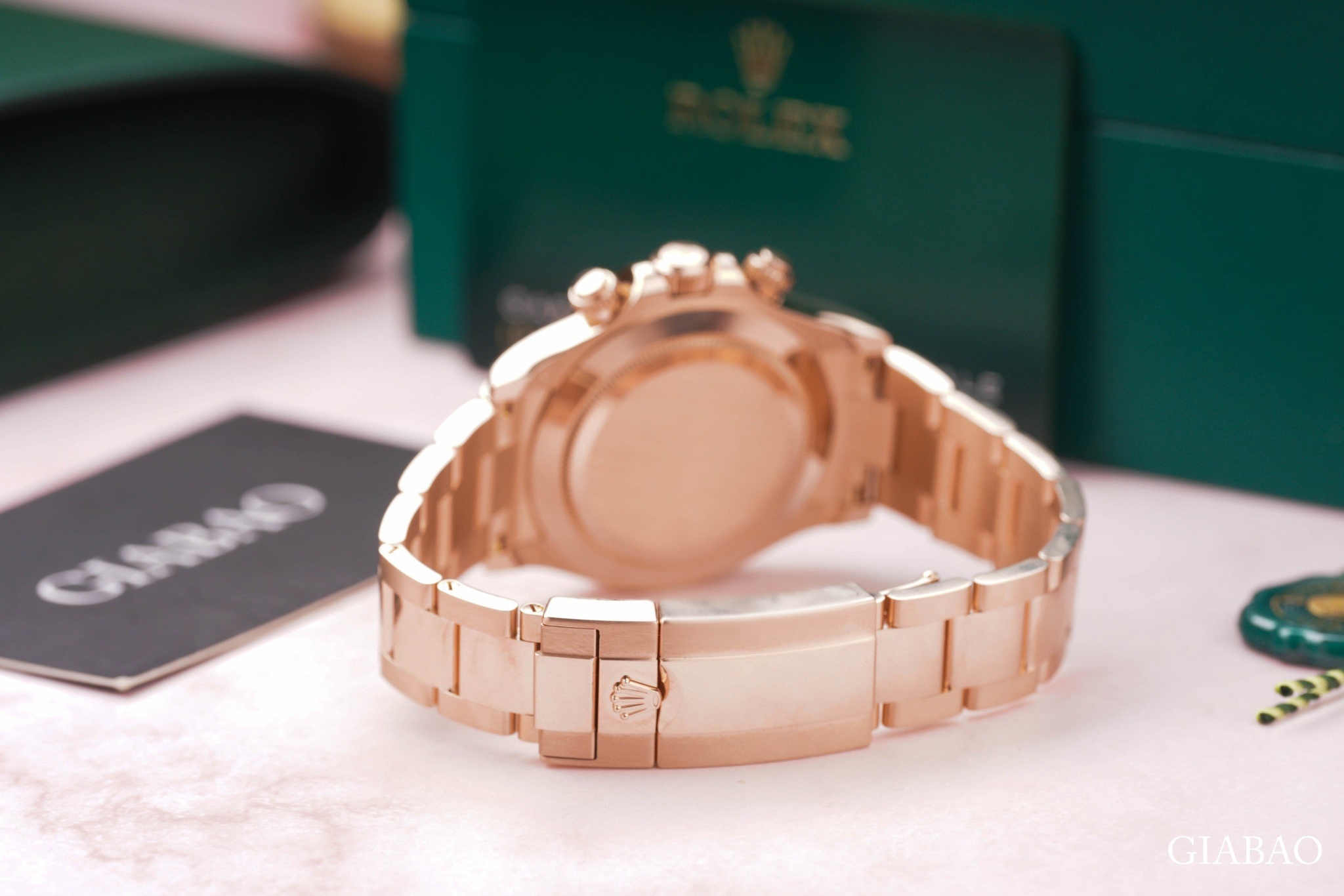 Quay trở lại với thiết kế này, chúng ta có bộ vỏ được làm từ chất liệu độc quyền của Rolex. Chất liệu vàng Everose này trên thực tế vẫn là một loại vàng hồng 18K, nhưng được điều chỉnh về tỷ lệ để đem tới khả năng giữ màu hoàn hảo. Vàng sẽ giữ được sắc hồng sau nhiều năm sử dụng, không bị phai như những loại vàng 18K khác.
