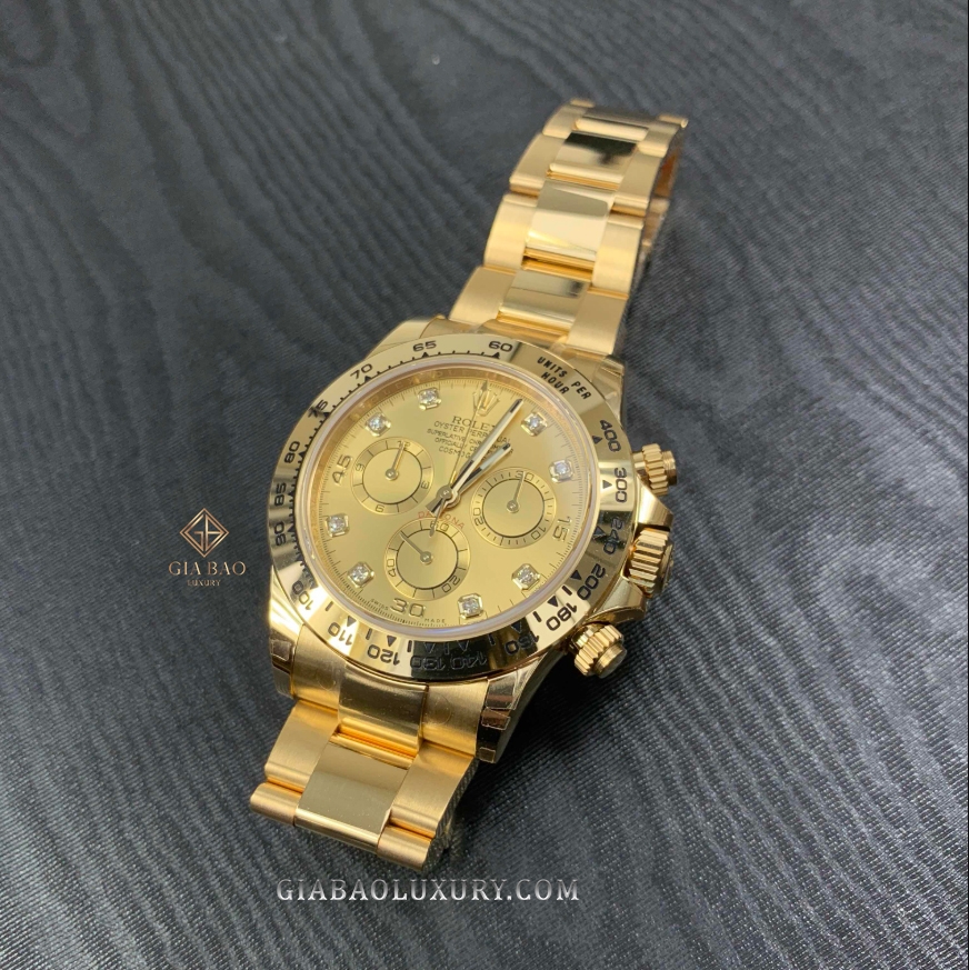 Đồng Hồ Rolex Cosmograph Daytona 116508 Mặt Số Vàng Champagne Cọc Số Kim Cương