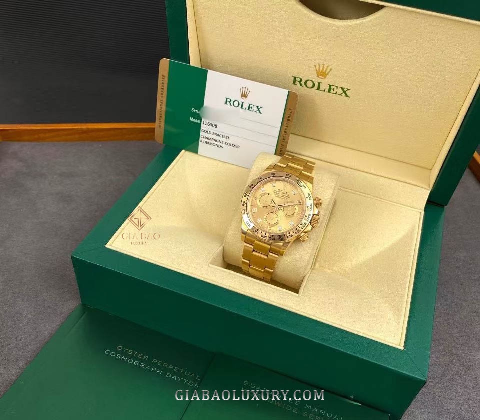 Đồng Hồ Rolex Cosmograph Daytona 116508 Mặt Số Vàng Champagne Cọc Số Kim Cương hiện đang được cung cấp bởi Gia Bảo Luxury. Liên hệ với Gia Bảo Luxury để mua được sản phẩm với mức giá tốt nhất.