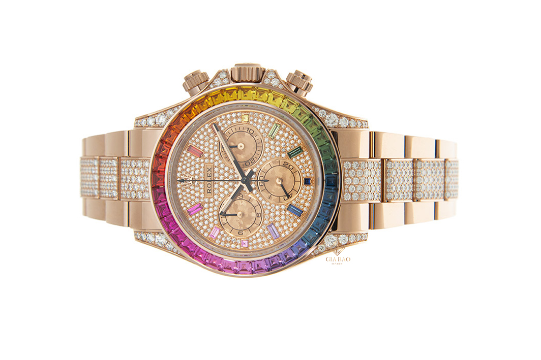 Chiếc Rolex đắt giá nhất từng được bán đấu giá chính là Daytona, và bộ sưu tập này cũng sở hữu rất nhiều mẫu đồng hồ hiện đại với mức giá cao nhất của thương hiệu. Một trong số đó chính là chiếc Rolex Cosmograph Daytona 116595RBOW, sở hữu Mặt Số Và Dây Đính Kim Cương.