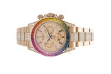 Với chiếc Rolex Cosmograph Daytona 116595RBOW, Rolex đã sử dụng 36 viên đá Sapphire với nhiều màu sắc khác nhau. Các sắc thái màu được chuyển mượt mà từ đỏ cho tới cam, vàng, lục, lam, chàm và kết thúc ở màu tím. Đây chính là dải màu của cầu vồng, tạo nên cái tên cho thiết kế.