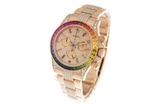 Kim cương trên mặt số và dây đeo đã rất đắt đỏ, nhưng đây vẫn chưa phải yếu tố chính làm nên giá trị của chiếc đồng hồ. Thứ mà Gia Bảo muốn nói tới ở đây chính là sự kỳ công trong chế tác vành bezel, với đầy đủ sắc màu của cầu vồng.