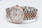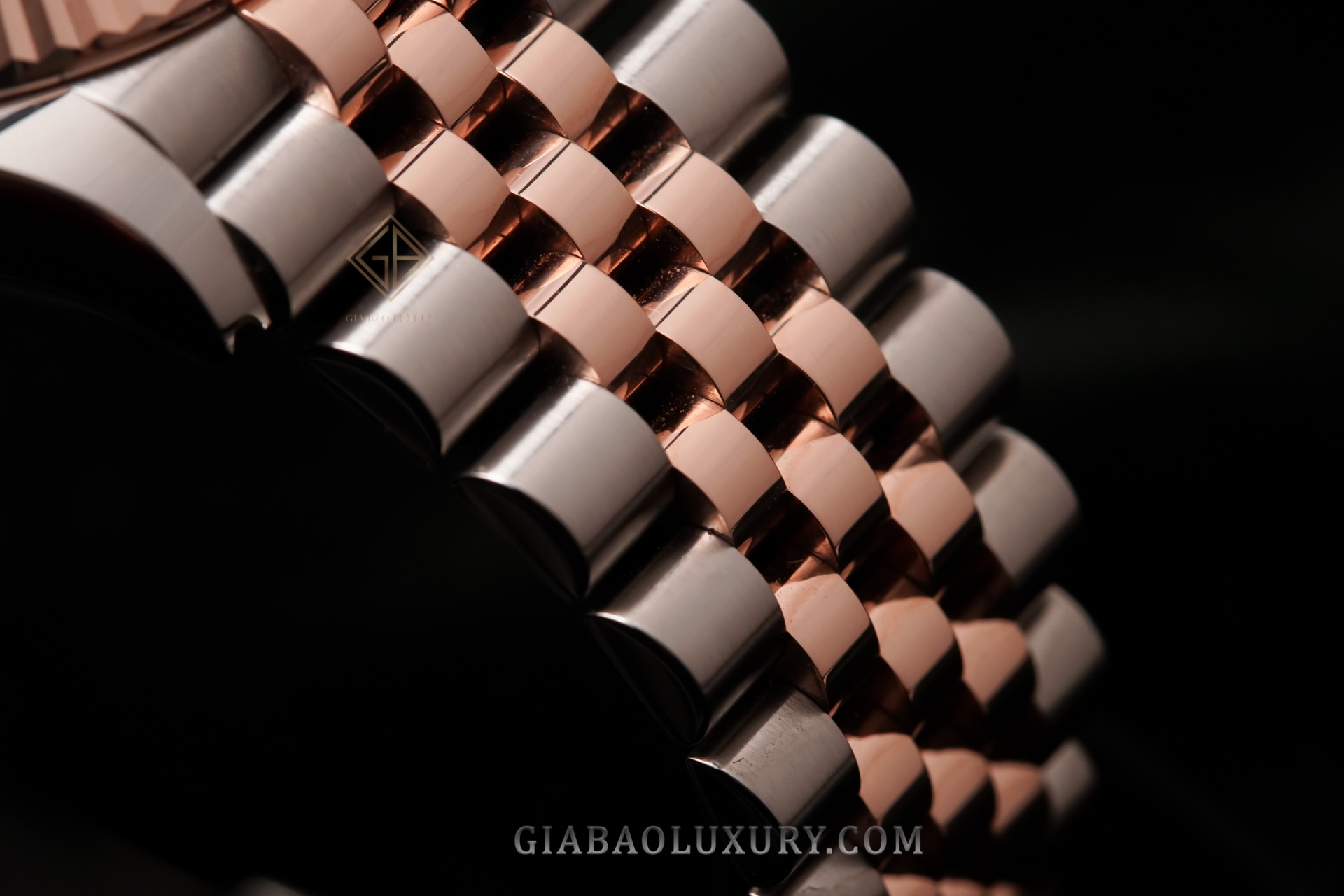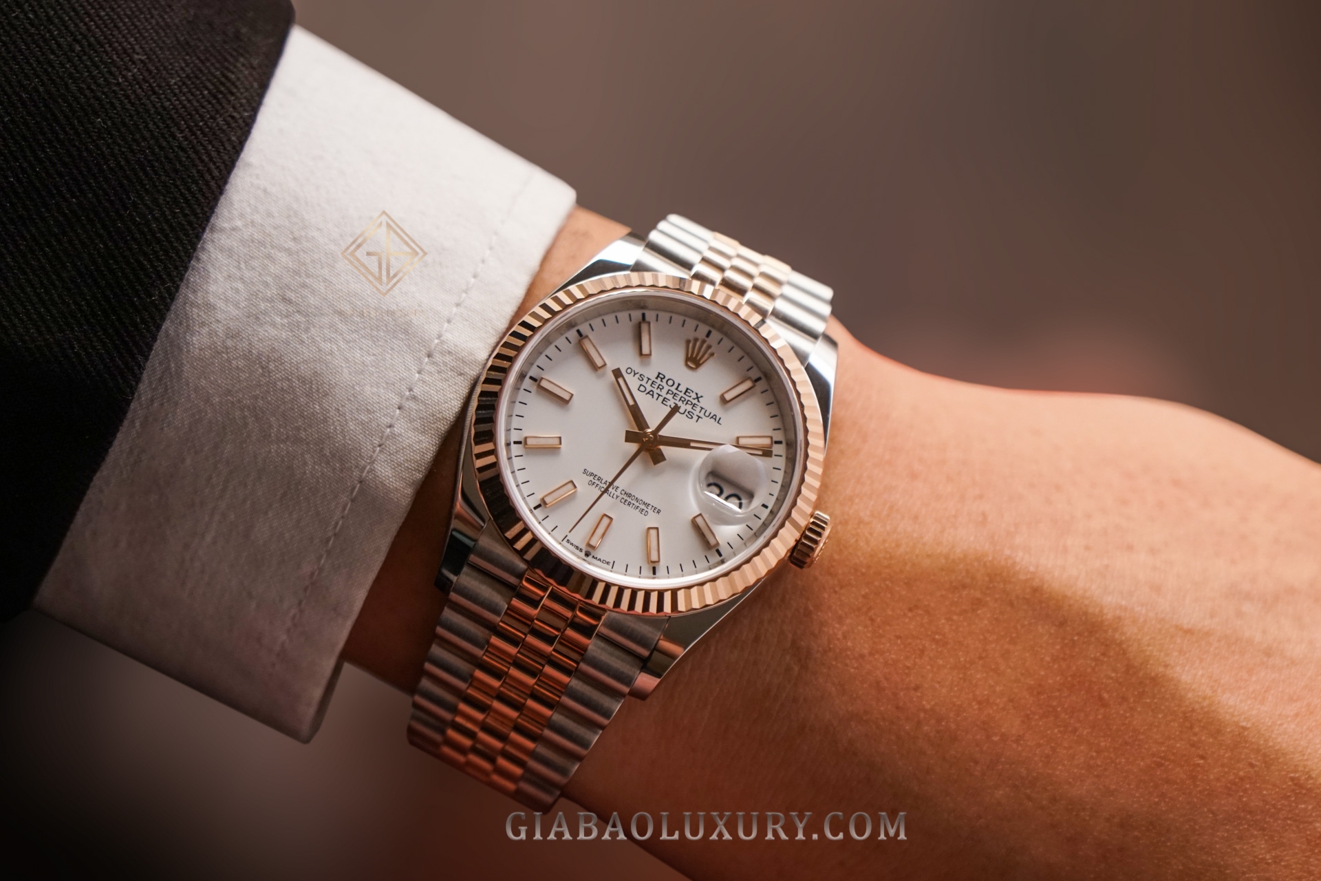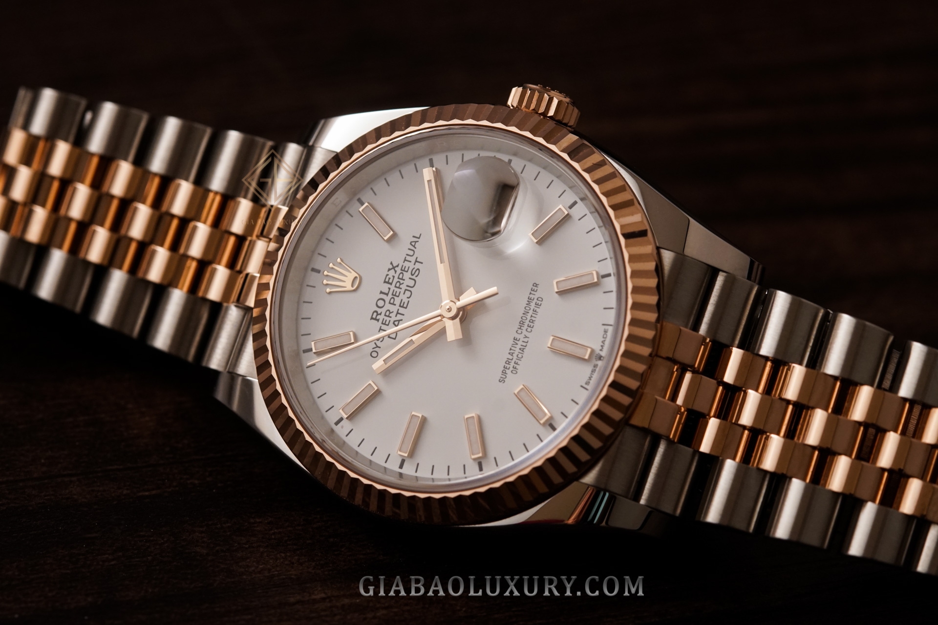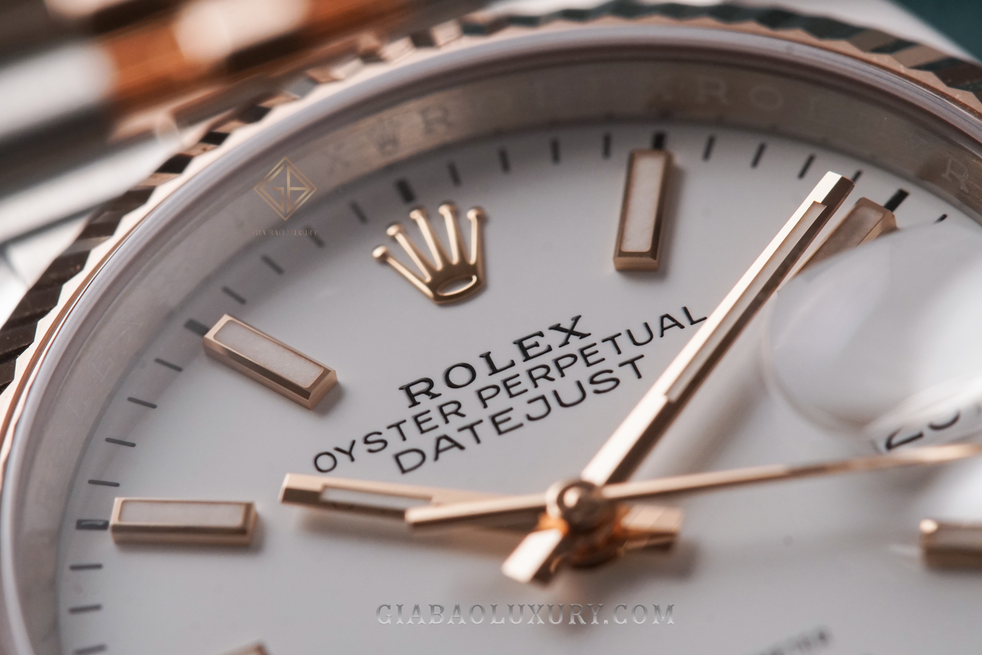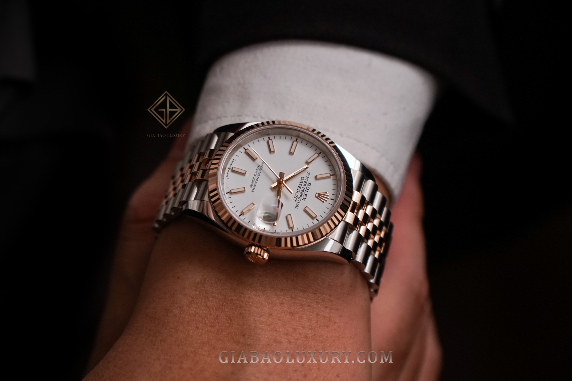 Chiếc đồng hồ Rolex Datejust 36 126231 là mẫu đồng hồ two-tone kết hợp thép không gỉ Oystersteel và vàng Everose đường kính 36mm màu trắng cùng dây đeo Oyster trang bị liên kết mở rộng tiện nghi Easylink, cho phép mở rộng mối nối đến 5mm. Vành bezel khía rãnh được làm từ vàng Everose đánh bóng nổi bật khiến phiên bản này mang đậm sang trọng nhưng không kém phần mạnh mẽ, khỏe khoắn.
