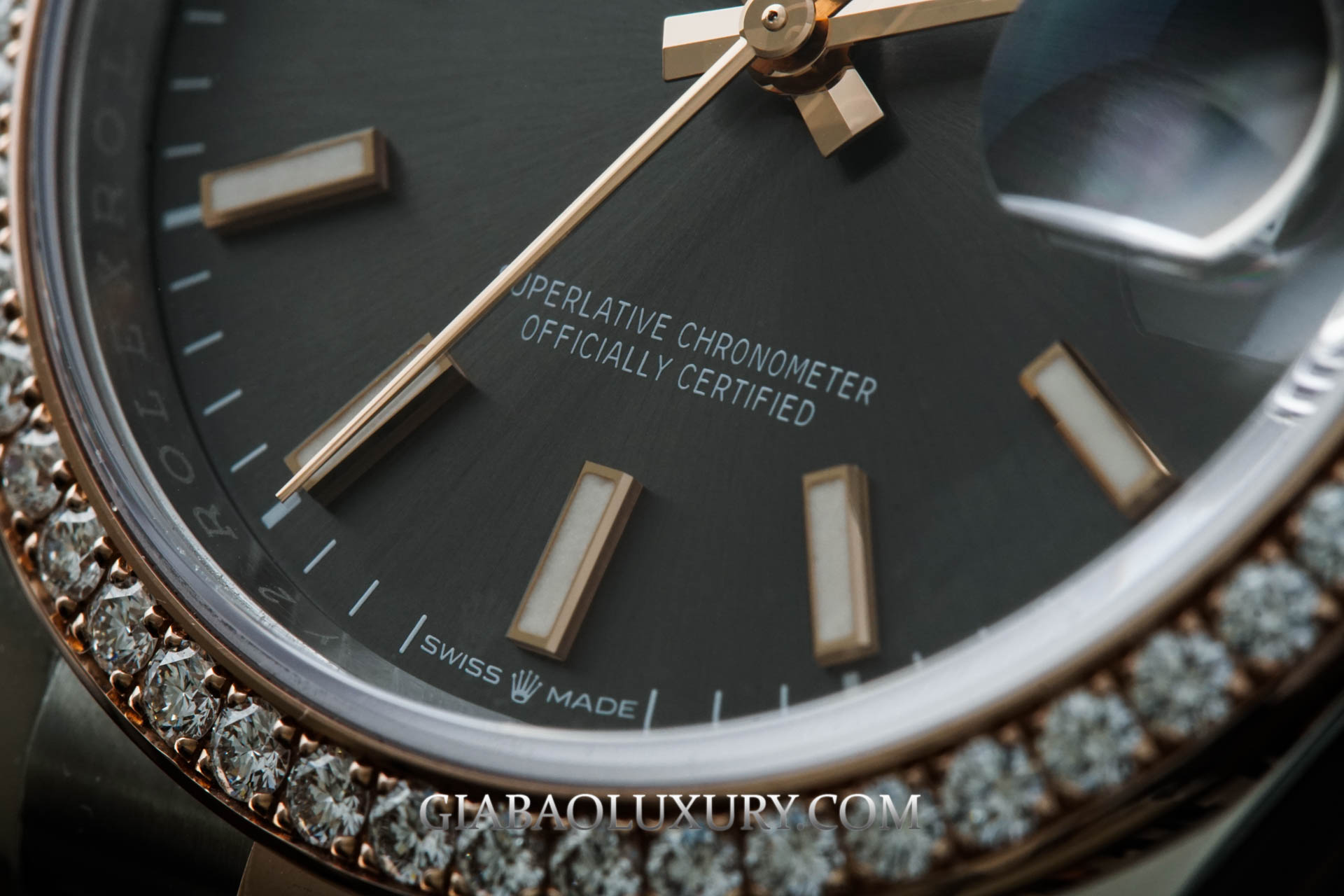 Quay trở lại với chiếc Rolex Datejust 36mm 126281RBR model 2018, chúng ta có thề dễ dàng nhận thấy một món phụ kiện xa xỉ, mang đến cho người đeo một tầng đẳng cấp cao, thể hiện sự tinh tế trong lựa chọn và am hiểu dòng sản phẩm cao cấp này. Vành bezel giờ đây đã được gắn những viên kim cương thiên nhiên chính hãng được chọn lựa cẩn thận và tỉ mỉ, nhiệm vụ đơn giản của những viên kim cương này chính là thu hút ánh sáng và khiến cho vị chủ nhân của nó thêm nổi bật giữa đám đông, tiệc tùng hoặc hội nghị.