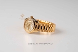Lấy cảm hứng từ những món trang sức đắt tiền, những người thợ chế tác đồng hồ Rolex đã sáng tạo phần nền mặt số hào nhoáng bằng cách gắn những viên kim cương có cùng kích cỡ theo một cách ngẫu nhiên trên chất liệu vàng vàng.