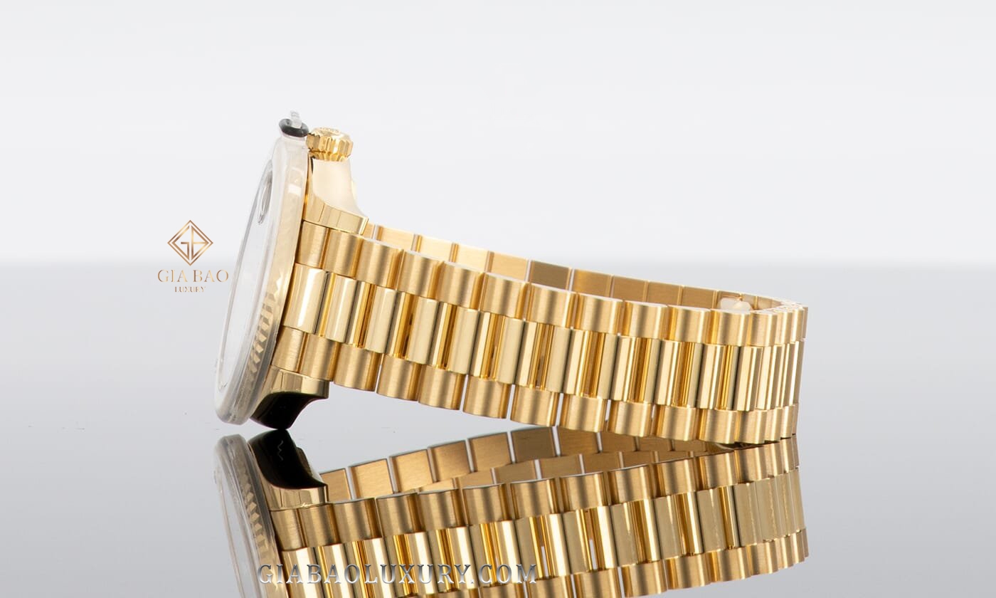 Rãnh khía (fluted bezel) được chế tác từ vàng 18ct - dấu ấn đặc trưng của dòng sản phẩm cao cấp đến từ Rolex và là DNA của Rolex Datejust nhằm đảm bảo chống thấm nước tuyệt đối cho đồng hồ.