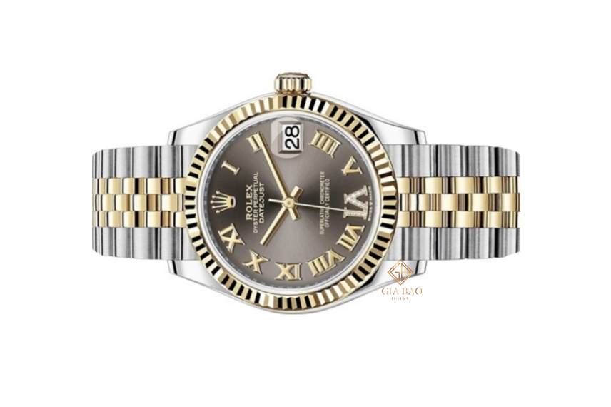 Đồng Hồ Rolex Datejust 31 278273 Mặt Số Xám Cọc Số La Mã thiết kế thời trang thanh lịch. Dây đeo Jubilee mối nối 5 mảnh chất liệu vàng vàng kết hợp thép không gỉ bền đẹp cùng thời gian.